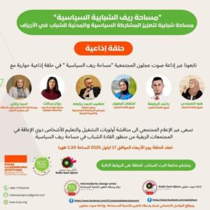 ضمن مشروع مساحة ريف الشبابية السياسية الآمنة الذي ينفذه مركز وسطاء التغيير للتنمية المستدامة بالشراكة مع إذاعة صوت عجلون المجتمعية، وبالتعاون من مؤسسة روزا لوكسمبورغ