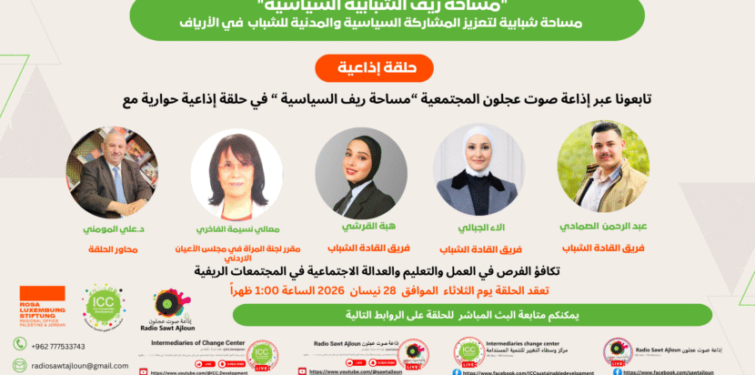 📌 يُذكر أن مشروع “مساحة ريف” ينفذه مركز وسطاء التغيير للتنمية المستدامة بالشراكة مع إذاعة صوت عجلون المجتمعية، وبالتعاون مع مؤسسة روزا لوكسمبورغ الألمانية، ويهدف إلى توفير مساحة شبابية آمنة ومستدامة لتعزيز المشاركة المدنية والسياسية للشباب في الأرياف.