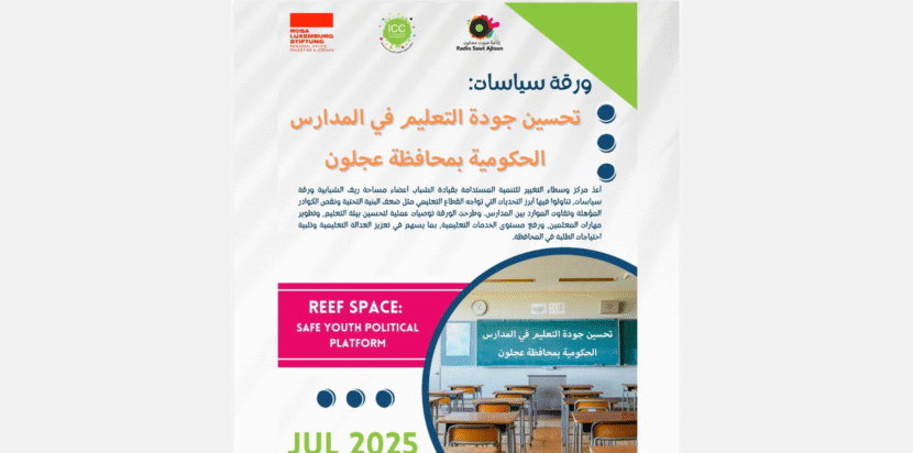 في إطار جهود تمكين الشباب وتعزيز مشاركتهم في صناعة السياسات العامة، قام القادة الشباب ضمن أنشطة “مساحة ريف الشبابية السياسية الآمنة” بإعداد ورقة سياسية متخصصة حول قطاع التعليم في محافظة عجلون، تهدف إلى تقديم توصيات عملية لتحسين جودة التعليم وربط مخرجاته باحتياجات سوق العمل.